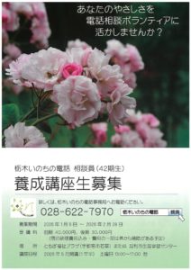 栃木いのちの電話相談員(42期性)養成講座生募集【令和8年1月5日~2月28日】