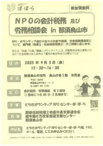 NPOの会計財務及び労務相談会in 那須烏山【令和7年9月5日】